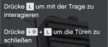 Anschließend kann die Trage mit der angegebenen Taste entnommen bzw. mit der bereits eingeladenen Trage interagiert werden.